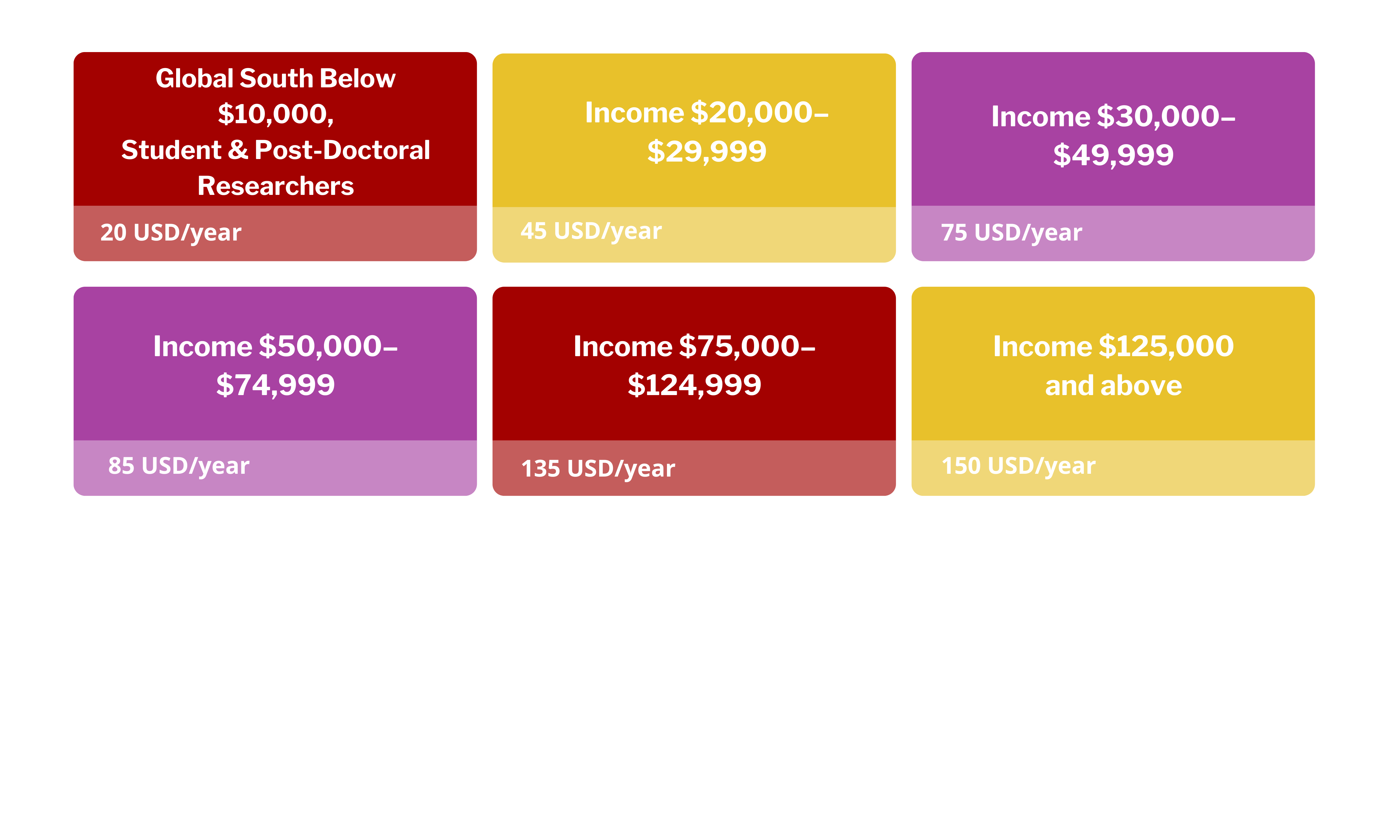 Join IAFFE MembershipBy joining IAFFE, you are becoming part of an association dedicated to transforming economic thought and practice through a feminist lens. Our dynamic, inclusive, and global network of academics, policymakers, and activists supports the creation, development, and implementation of intersectional feminist economics to advance social justice, equality, and institutional transformation. We have a membership plan to suit different budgets. If you are able, you may also make a donation when joining, to contribute to IAFFE’s ability to support less-resourced members. Join Now!Member Pricing